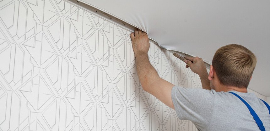 - Останется видимый стык между натяжным покрытием и обоями, даже если установлена бесщелевая конструкция;