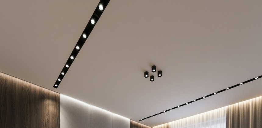 Сегодня большинство предпочитает отделку потолочной поверхности натяжным полотном. Это быстро, относительно недорого, нет грязи во время монтажа, а служат покрытия до 25 лет без потери вида. Остается только один вопрос: какое освещение выбрать?