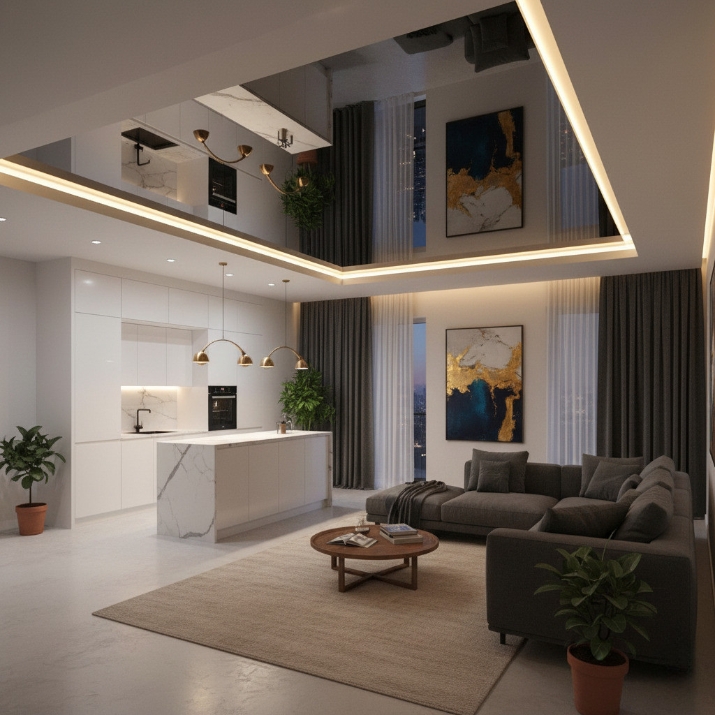 Многоуровневые натяжные конструкции позволяют работать с пространством гибко: формировать сложную геометрию, выстраивать разные сценарии освещения, скрывать технические элементы. Такое решение подходит для квартир, частных домов, коммерческих помещений.
