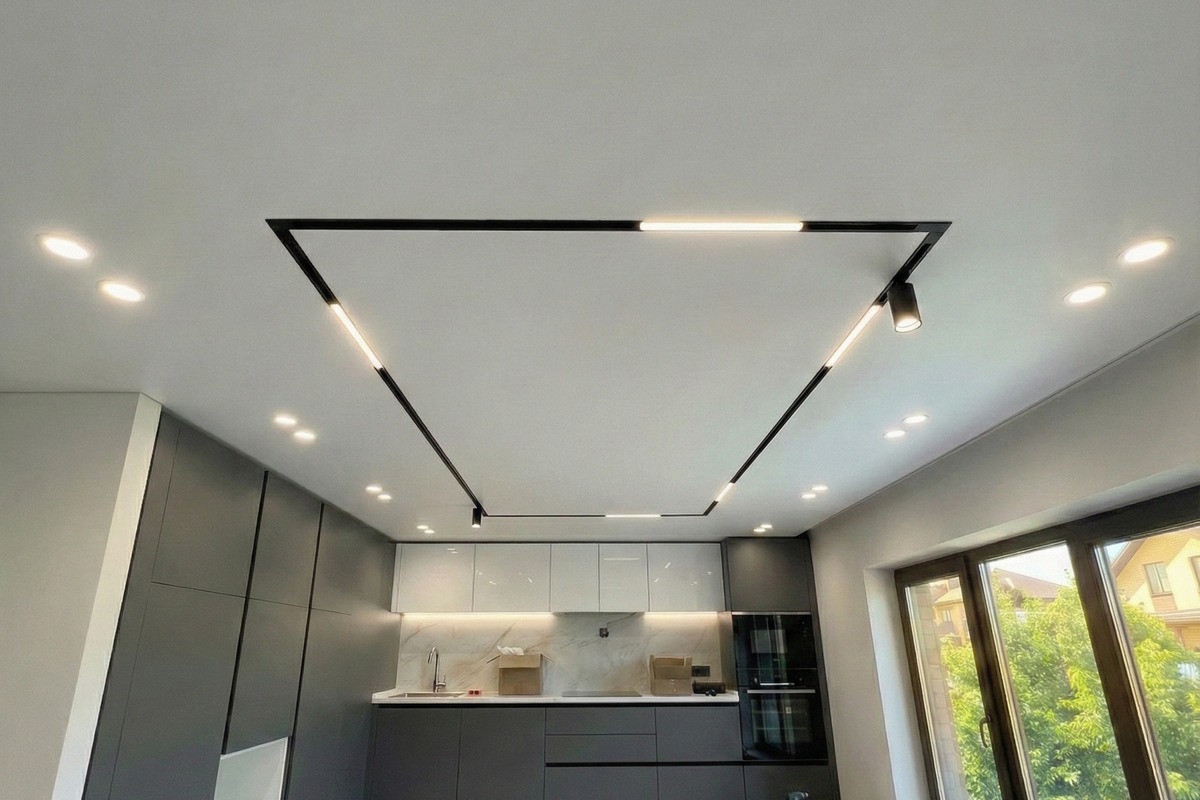 Закажите бесплатную консультацию и выезд технолога, чтобы узнать точную стоимость установки натяжного потолка с трековой системой. На встрече Вы подберете материалы и правильно организуете освещение в помещении.