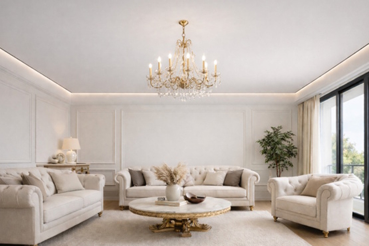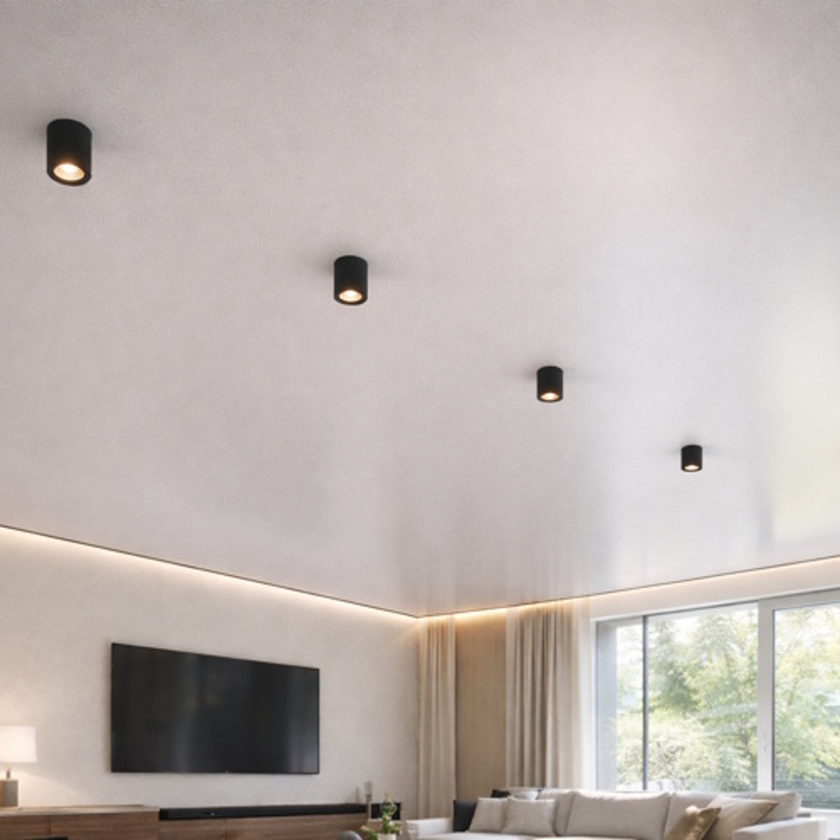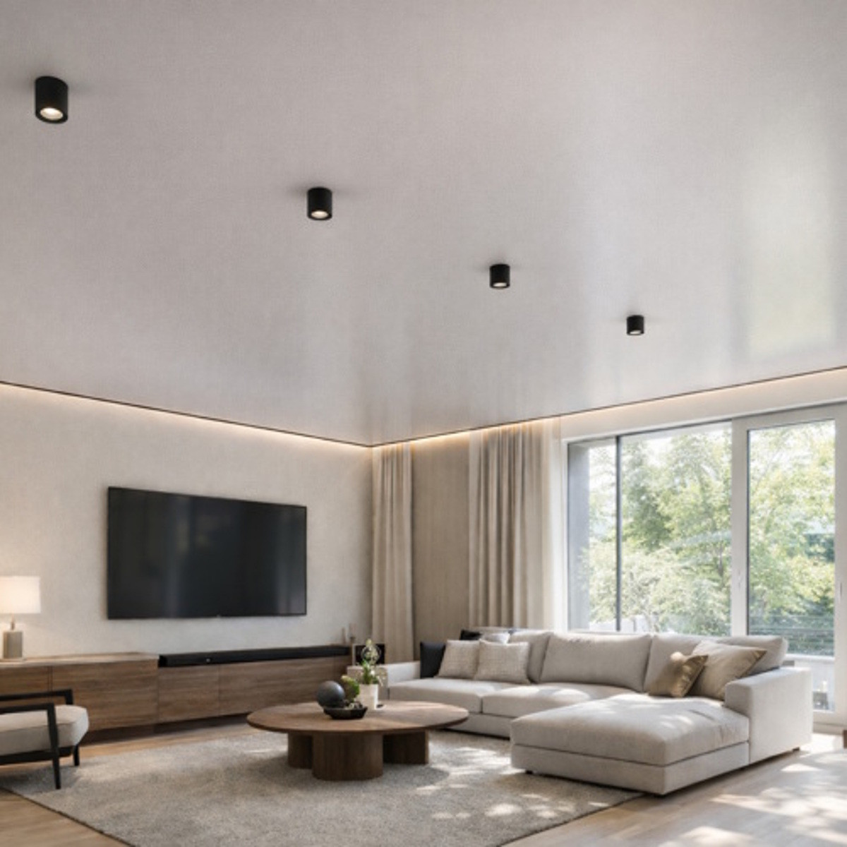 Натяжные потолки в гостиной – завершающий этап стильного современного ремонта. Встроенное освещение, плотное примыкание к стенам, полное сходство с белыми гипсокартонными потолками или, наоборот, нестандартные яркие решения – все это возможно с натяжными конструкциями.
