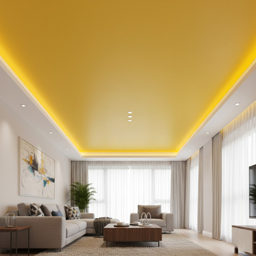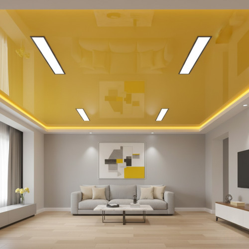 Желтые натяжные потолки – яркий стилистический акцент в вашем интерьере. Красивые оттенки в трех разных фактурах – матовой, сатиновой, глянцевой, а также в ткани уже украшают дома и квартиры наших клиентов. Смотрите фото готовых проектов NOVA в нашем каталоге.