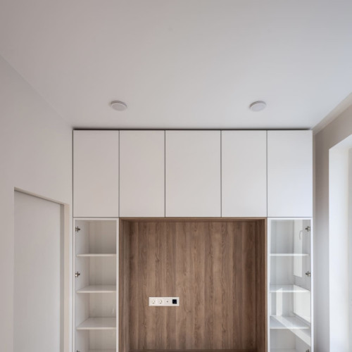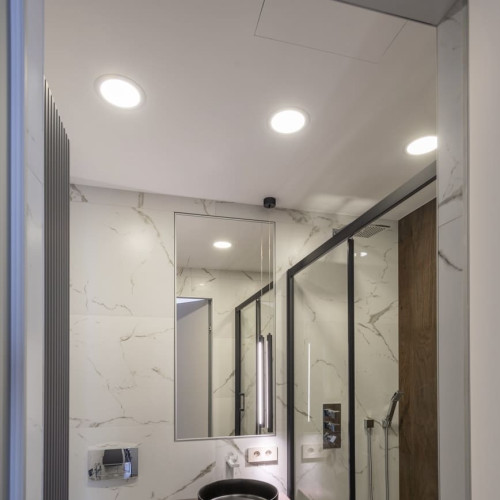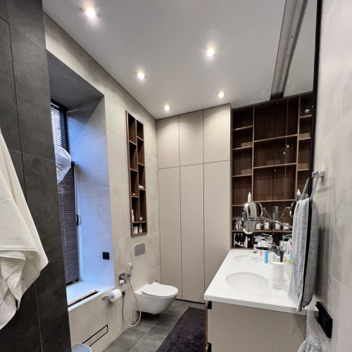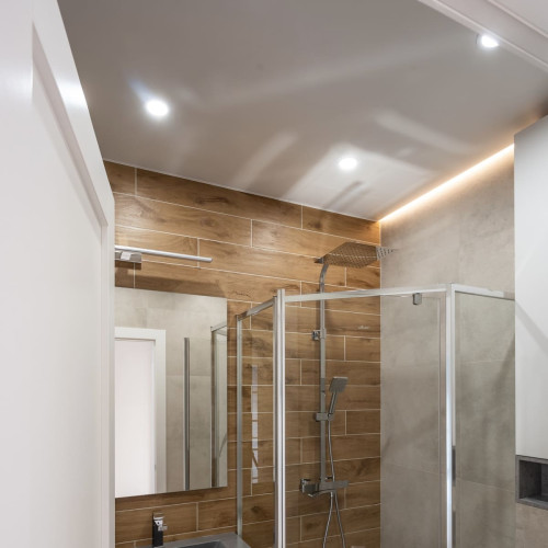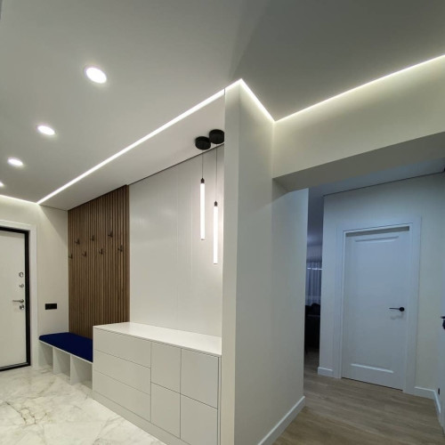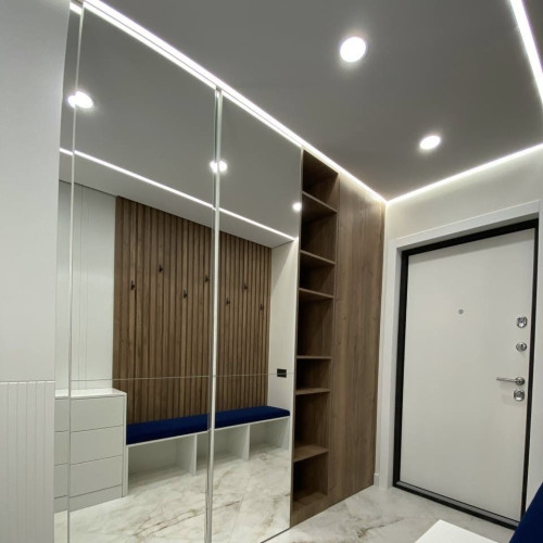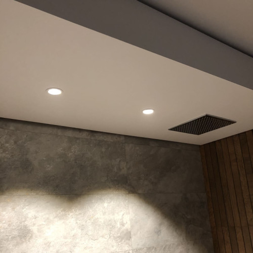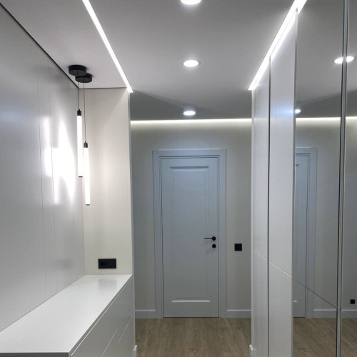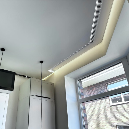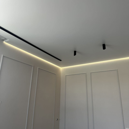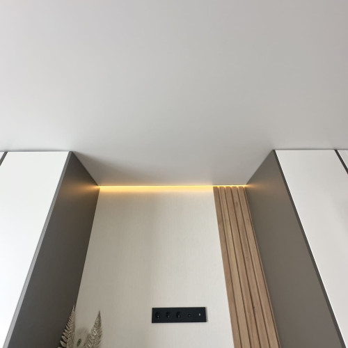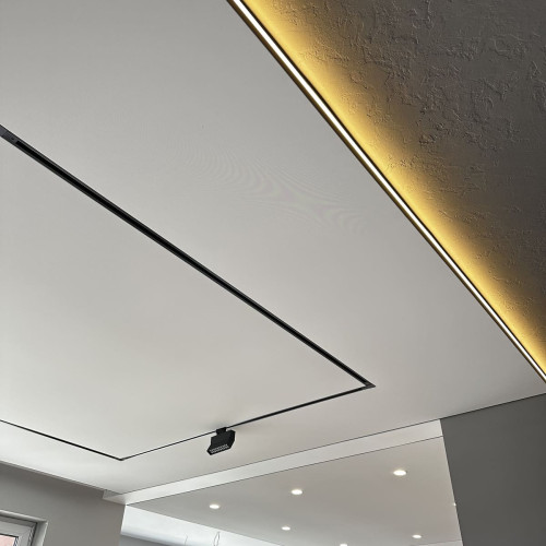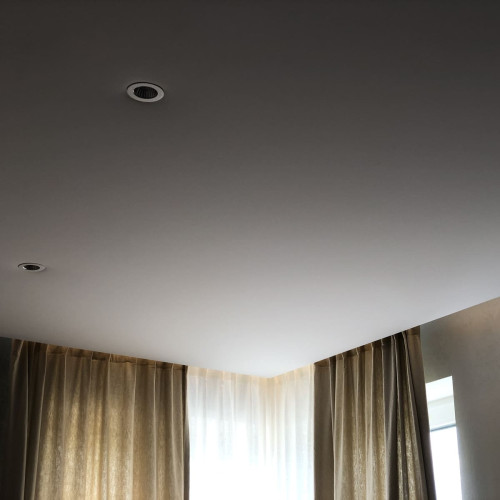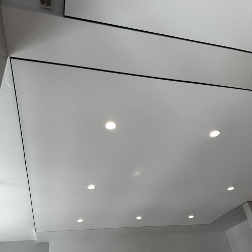 Если вам нужно сохранить доступ к коммуникациям и датчикам, мы оставляем в незаметных местах ревизионные люки, закрытые или декоративными магнитными решетками, или дверцами, затянутыми тем же материалом, из которого выполнена потолочная поверхность.